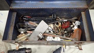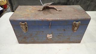 Lot #2543: Beach Metal Tool Box, 18 In. x 9 In. x 10 In., C/w Contents of Various Tools -Heat Gun, Soldering Gun, Glue Gun (C1)