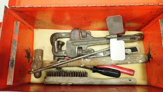 Lot #2541: Jetline Metal Tool Box, 18 In. x 9 In. x 10 In., C/w Contents of Various Tools (C1)