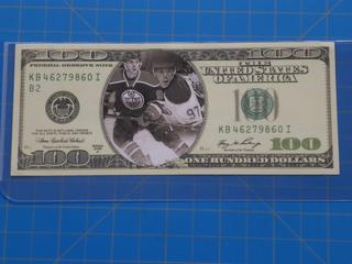 Lot #5980: (1) The United States of America $100.00 Bill with Edmonton Oilers Hockey Player on Front