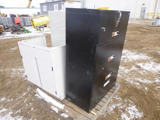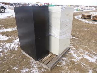 Lot #4777: (2) 4 Drawer File Cabinets, (1) 2 Door File Cabinet, (NF 5)