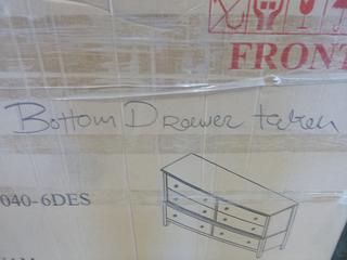Lot #4701: Assorted Furniture Pieces, C/w 6 Drawer Dresser *Note: Bottom Right Drawer Missing* *As Is, May Be Incomplete* (Row 4)