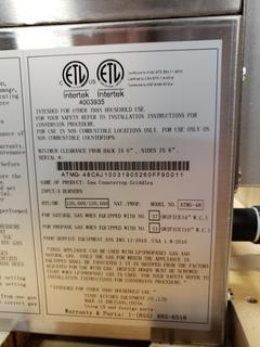 Lot #5106: Model ATMG-48CAH1 4-Burner Griddles w/ Independent Manual Control NG *Note: Item Cannot Be Removed Until November 10th*