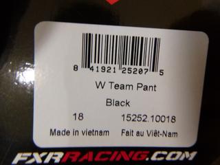 Lot #0364: (1) FXR Women's Team Pant, Size 18