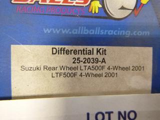 Lot #1310: (1) Unused All Balls Racing Differential Kit, Suzuki Rear Wheel LTA500F 4-Wheel 2001, Part 25-2039A