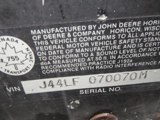 Lot #1632:     1976 John Deere 440 Liquifire Snowmobile c/w KEC-440/23LC, Showing 2,689 Miles, SN J44LF070070M *NOTE: Parts Only*
