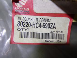 Lot #1956: (2) Unused Honda ATV Mud Guard, Part# 80122-HM5-850ZA