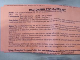 Lot #1423:     2007+ Dalton Industries Yamaha Grizzly EFI 4x4 Clutch Kit, PT# DBW700Y