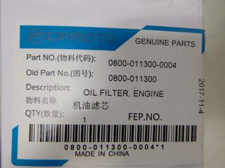 Lot #1113: (4) Unused CFMOTO Oil Filters, Part 0800-011300-0004