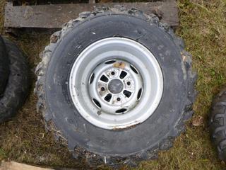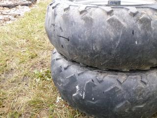 Lot #1558:     Maxxis ATV Tires & Rims, Model # M977,  (2) 4x8-12, (2) 4x10-11, *NOTE: 0% tread left*