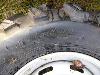Lot #1569:     Wanda A/T Master ATV Tires,  (2) 25x8-12, (1) 25x10-12, &( 2) Rims