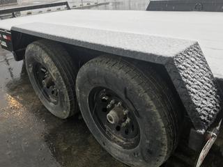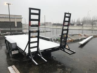Lot #0101A: 2018 Southland LB18T-14 18' T/A Flat Deck Equipment Trailer c/w Fold up Ramps, ST235 80 R16 E Tires, GVWR 7000KG (15400 LB) 2 x 3182 KG (7000 LB) Axles, 1 -5000 lb Top-wind Jack, 18-foot Working Deck, 2-5/16” Ball Coupler. S/N 2SFJC3316J1042684.