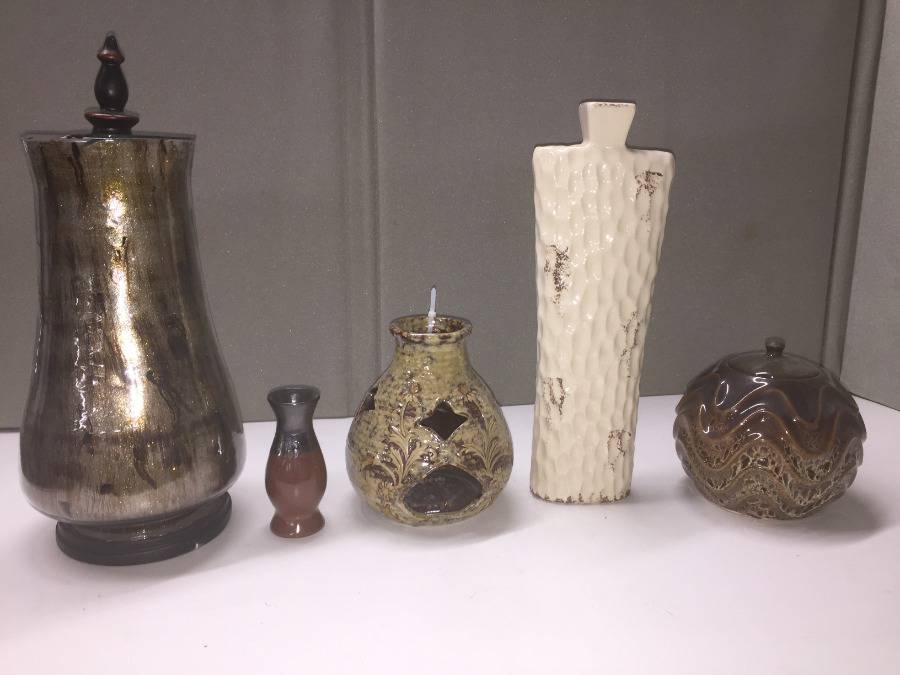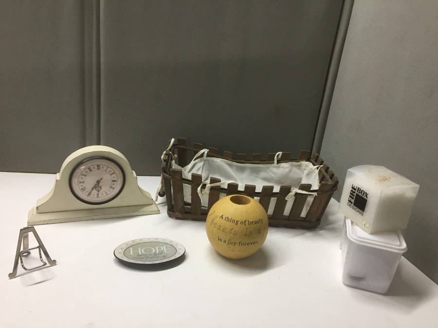 Lot #1753: Assorted Vases, Clock, & Basket.