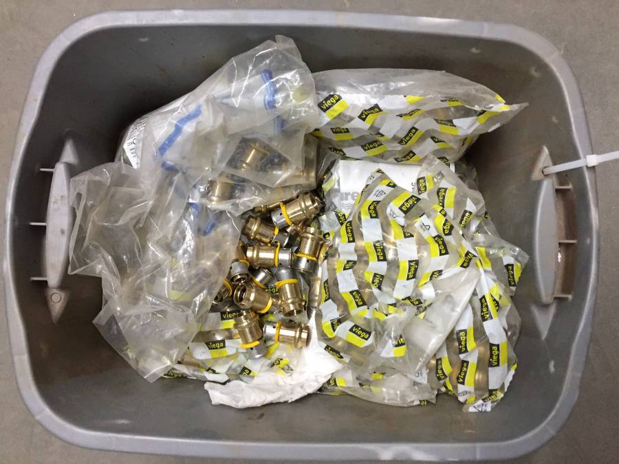 Lot #1758: Bin of Copper Nipples.