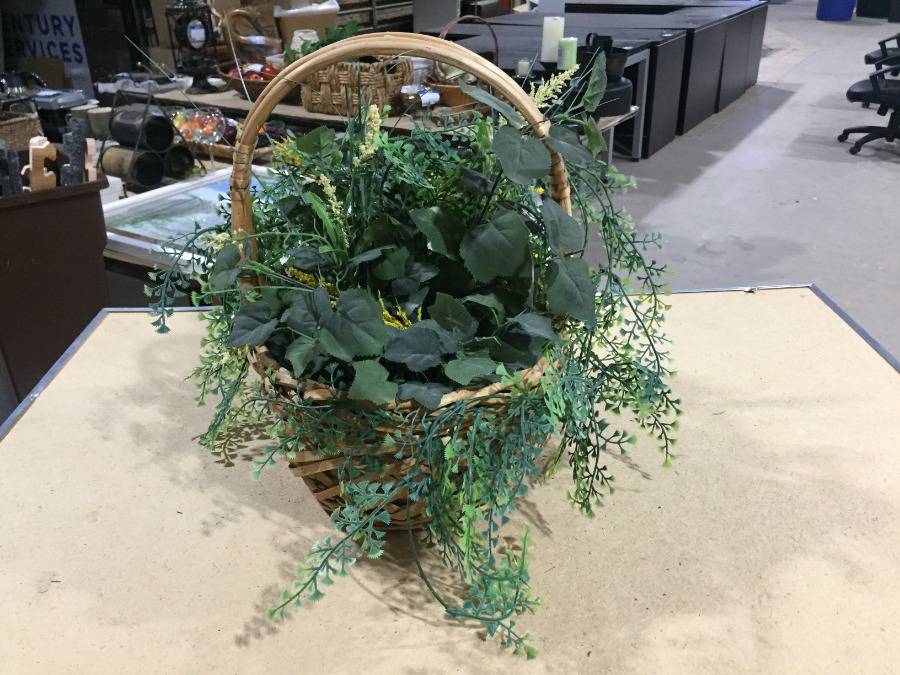 Lot #3951: Wicker Basket 14" Tall with Fake Plant.