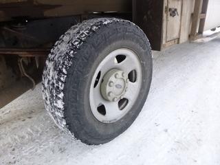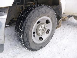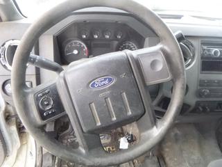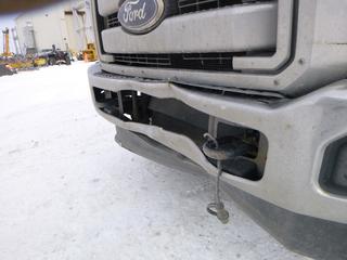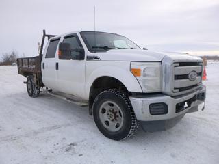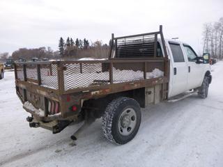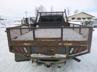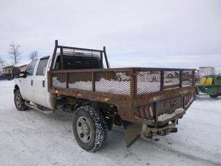 Lot #0092: 2011 Ford F-350 XLT 4X4 Flat Deck Truck c/w 6.2L V8, A/T, A/C, Showing 306,629 Kms, GVWR 11,200 Lb, 275/70R18 Tires, 8.5 Ft. Deck With Fold Down Sides, VIN 1FT8W3B65BEA43596 *Note: Hood Release Does Not Work, Grill Broken, Can't Open Hood*