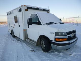 - 0076: 2012 Chevrolet G33803 Ambulance c/w 6.0L Vortec V8, A/C, Showing 308,850 Kms, 14,448 Hours, 225/75R16 115/112P Tires, VIN 1GB3G3CG6C1104479 *Note: Starts With Boost, Does Not Stay Running*