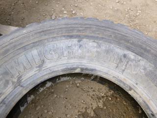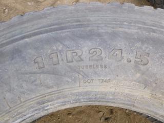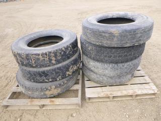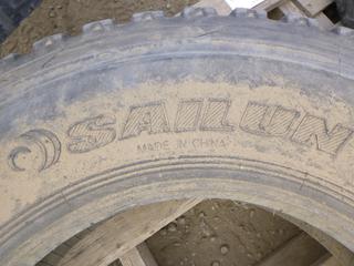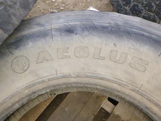 Lot #0767: (7) Assorted Tractor Trailer Tires Includes (2) Hankook DW01, Size 11R24.5, (1) Sailun S753, Size 11R24.5, (2) Aeolus HN596, Size 11R22.5, (1) Michelin XZE, Size 11R22.5, (1) Bridgestone R250, Size 11R22.5 (ROW 1)