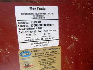 Lot #0800: Mac Tools Automotive Lift, Model LF21000DE, SN 120600000080158, Maximum Capacity 10,000 lbs. (W. Fence)