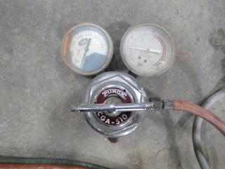 Lot #2124: (2) Acetylene Torch Hose W/ Gauges, (1) Approx. 23 Ft., (1) Approx. 25 Ft., (G-1)