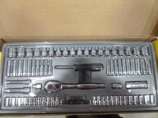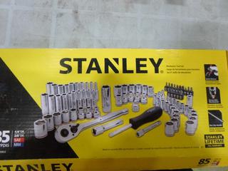 Lot #3160: Assortment of Hand Tools, 4 Ft. Level, XL Disposable Coveralls, Space Heater, Stanley 85 Piece Socket Set and Tool Box, (F-2)