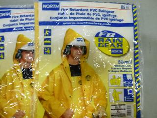 Lot #3587: (3) North Fire Retardant PVC Hooded Rain Coats, Size XL, (F-2)