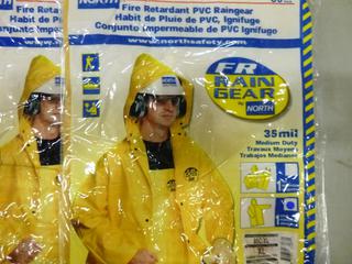 Lot #3594: (3) North Fire Retardant PVC Hooded Rain Coats, Size XL, (F-2)