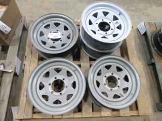 Lot #1683: (5) Steel Rims 5.5 In. Bolt Circle, (3) 16 In. x 6 In. x 6 Bolt, (2) 15 In. x 6 In. x 6 Bolt (Row 2)