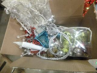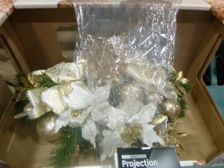 Lot #6050: Qty of Christmas Décor: Wreaths, Mini Lights, Light Projector, Centerpiece, Ornaments, etc. (D1)