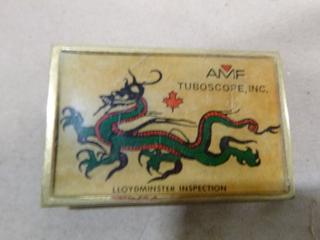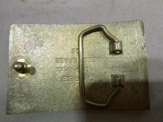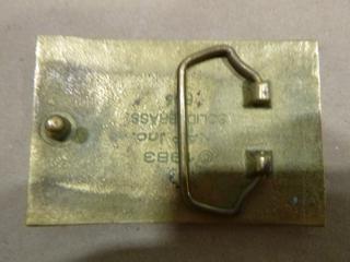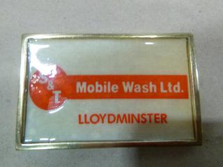 Lot #5588: (1) AMF Tuboscope Inc. Lloydminster Inspection Belt Buckle, 2 In. x 3 In., (1) S & T Mobile Wash Ltd. Lloydminster Belt Buckle (Upstairs)