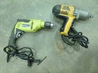 Lot #3146: (1) Dewalt 1/2 In. Corded Impact, (1) Ryobi D620H Corded Concrete Hammer Drill (C-2)