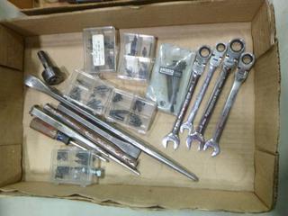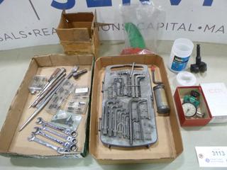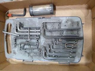 Lot #3113: Qty of Misc Items Including Allan Keys, Wrenches, Dial Indicator, 2 1/8 In. Self Fed Wood Bit and More (B2)