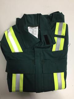 Lot #1299: IFR Workwear Inc. Flame Resistant Hi-Vis Coveralls, Green, Size 32.