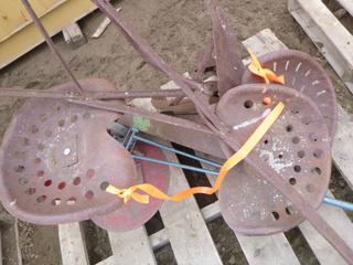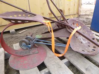 Lot #5594: (3) Rustic Farm Implement Seats, C/w Walk Behind Plow (NF-10)