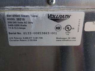 Lot #6491: Servewell Steam Table, Model 38218, 208-240V, 2400-3200W, 11.5-13.3A, A/N G133-00853863-001