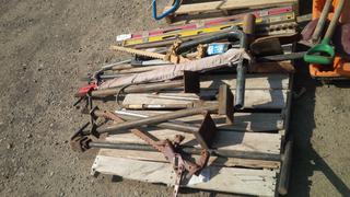 Lot #6080: (2) Levels 4', Sledge Hammer, Hand Auger & Jack Stands.