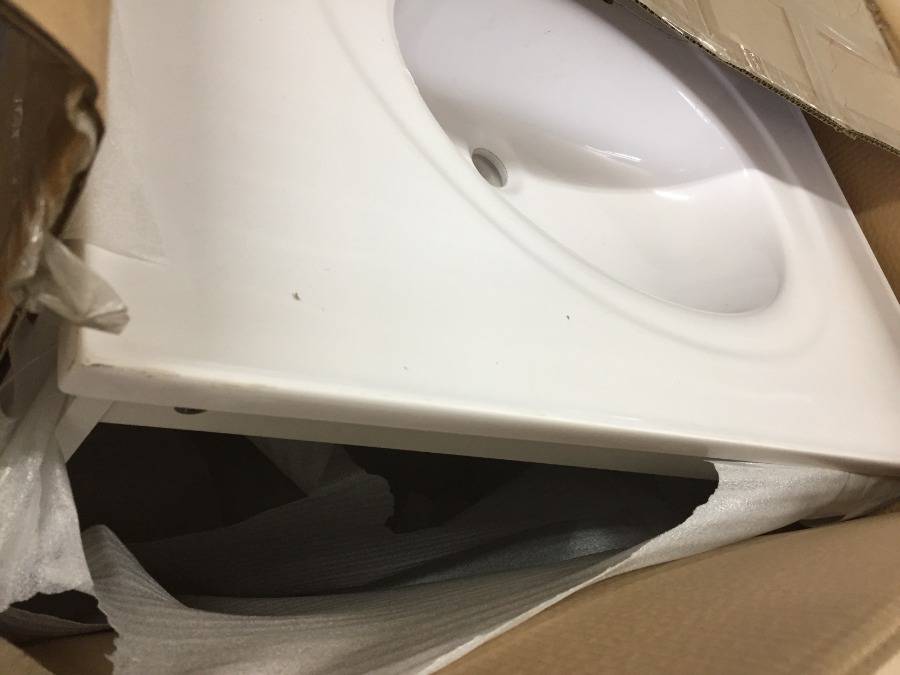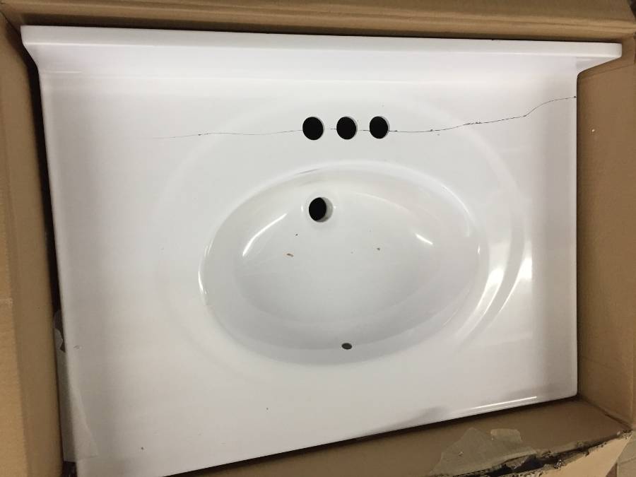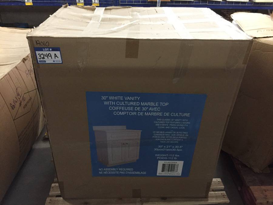 Lot #3249A: 30" White Vanity w/ Cultured Marble Top, Damaged.