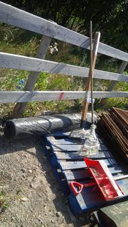 Lot #6062: (5) Rakes, Snow Shovel & (1) Roll of 6 Mil Poly 240" x 100'.