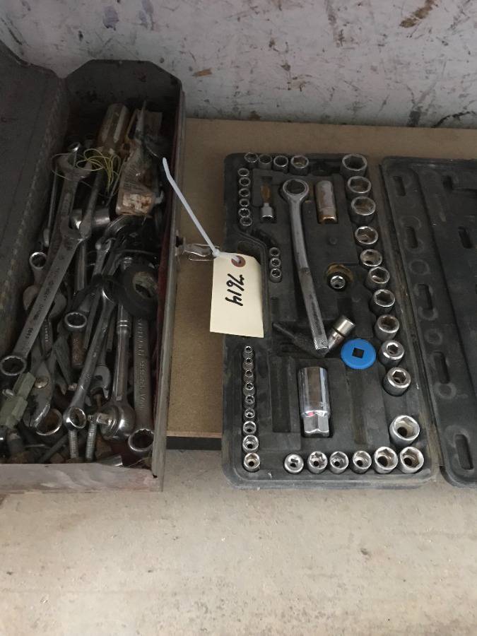 Lot #7614: Selling Off- Site - Tool Box w/Assorted Wrenches and Sockets. Location - 527 North 200 East, Raymond, AB - For Further Information Please Call Chris 403-308-1161.