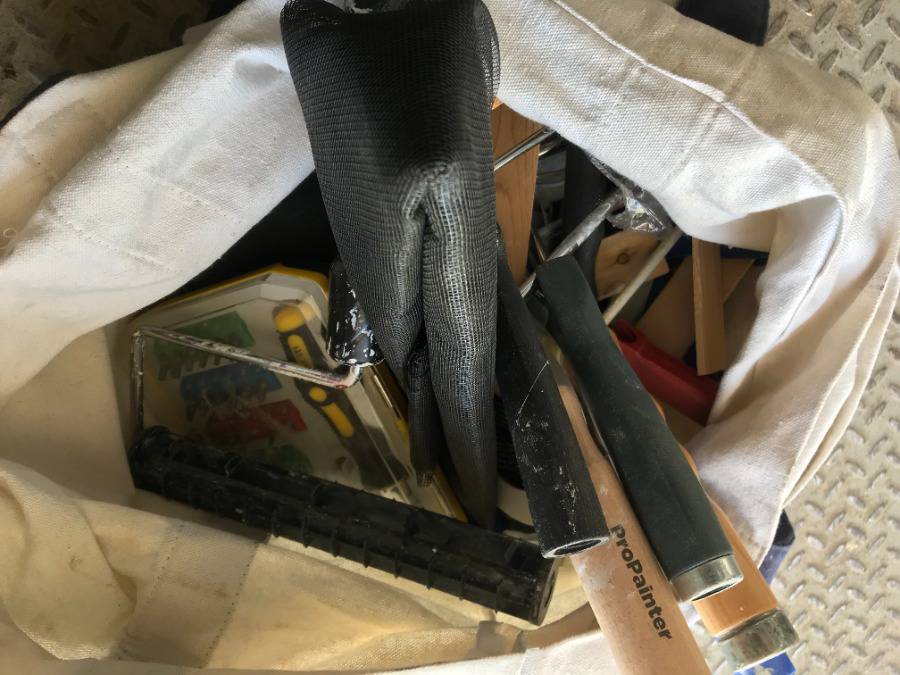 Lot #7545: Selling Off- Site - Tote Bag w/Paint Rollers, Calking, Etc. Location - 527 North 200 East, Raymond, AB - For Further Information Please Call Chris 403-308-1161.