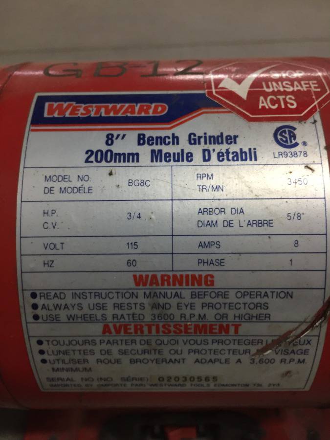 Lot #5429: Westward 8" Bench Grinder.
