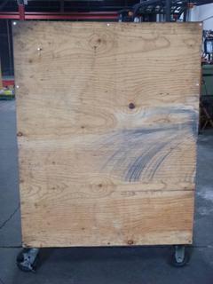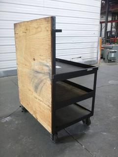 Lot #0547: Work Bench/Cart On Wheels with Upper Back Board and Lower Shelves, 37 In. x 26 In. x 52 1/2 In.
