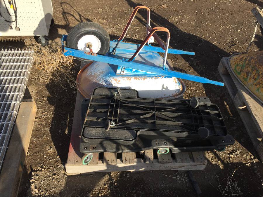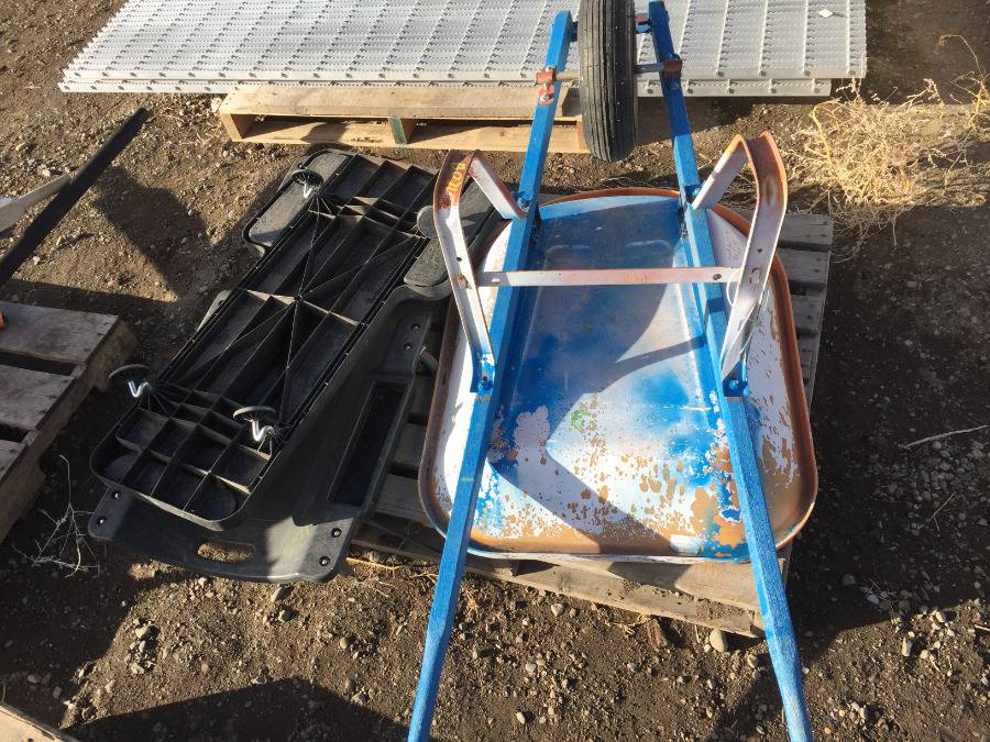Lot #6360: (2) Mechanic Creeper Dollies and (1) Wheelbarrow.