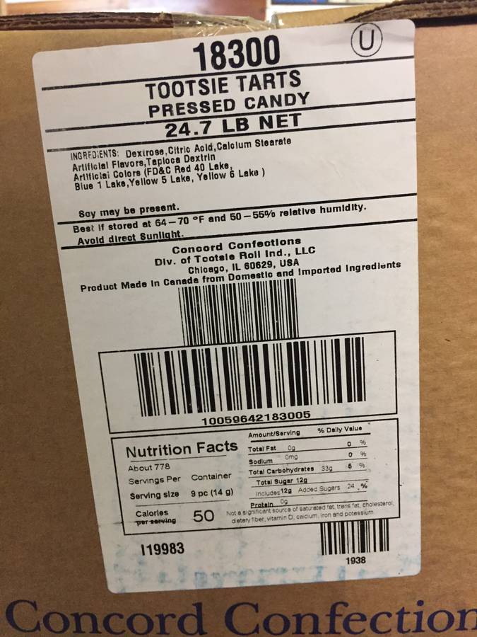 Lot #8022: (3) Boxes of Concord Confections "Box of Fun" Candies. Tootsie Tarts Pressed Candy, Rascals Fruit Candy - Coated, Kaboom Speckled Candy Centers. Box is 9 1/2" x 12". Unknown Quantity.