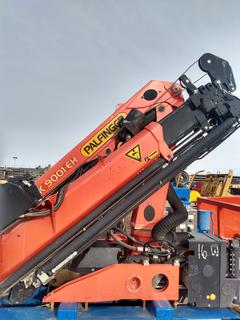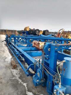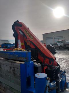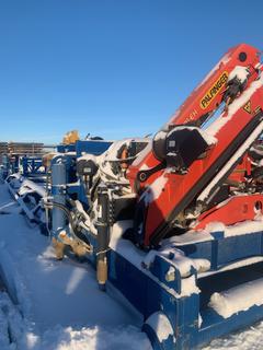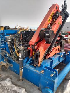 Lot #0691:     Palfinger 9001-EH c/w 55 Ft. x 9 Ft. Hydraulic Pipe Tub Skid, Hydraulic Power Pack, Hydraulic Outriggers *Note: Located In Nisku, For more Information Contact Justin at 780-887-3082*