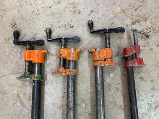Lot #0710: (4) Pony 3/4" Pipe Clamps, Approximately 3'-6'.