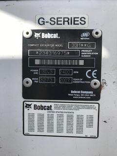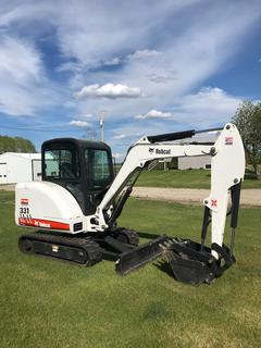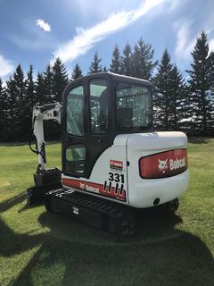 Lot #0279: 2007 Bobcat 331G Compact Excavator c/w Kubota V2203 2.2L Diesel, Cab, A/C, Heater, Joystick, Aux Hyd, 24 In. Digging Bucket, 5 Ft. Blade, Thumb, 12 In. Tracks, Showing 191 Hrs, SN 234316975 **Located In Sturgeon County, For More Information Contact Connor 780-218-4493**