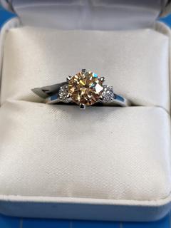 Lot #8203: Unused 1.5CT Moissanite Sterling Silver Ring, Rhodium Plated, Weight 3.95G, Size 10.5
