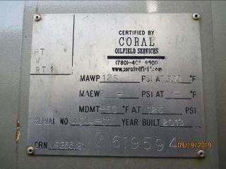 - 0437: 2013 Coral Storage Tank, 125 PSI 60m3, Gas Meter 4 In. Daniels, **Located Offsite Near Grande Prairie, AB, For More Information Contact Keith at 403-512-2504**