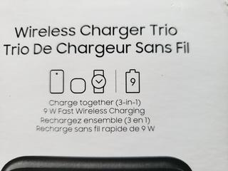 Lot #4789: Unused Samsung Wireless Charger Trio, Charge Up To Three Devices At Once c/w Charging Base, 25W Wall Charger, USB Cable and Manual, 240 x 86 x 15.5mm (Office)