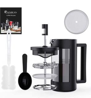 Lot #7931: Unused Rainbean French Coffee Press, Makes 2-4 Cups, Press and Filter Made of 304 Grade Stainless Steel, Body is Double-Wall Glass Construction, *Note: Missing A Lid* (Office)